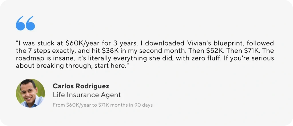 But today, it’s non-negotiable for any insurance agent who wants to scale past $100K/year. Whether you’re building a book of business, leading a team, or creating consistent high-income months, you need proven systems that actually work.